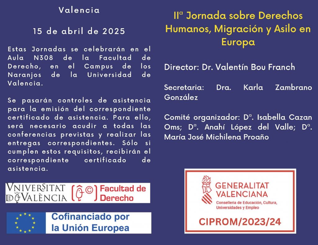 PARTICIPACIÓN EN II JORNADA SOBRE DERECHOS HUMANOS, MIGRACIÓN Y ASILO EN EUROPA (Universidad de Valencia) 15 de abril 2025